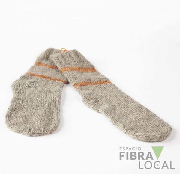 Calcetines tejidos a palillo con lana de oveja, producto 100% artesanal. La artesana para darle colorido se utilizaron tintes vegetales, obtenidos de hojas de durazno, manzano ,maqui, ají barba de hualle y barro negro.