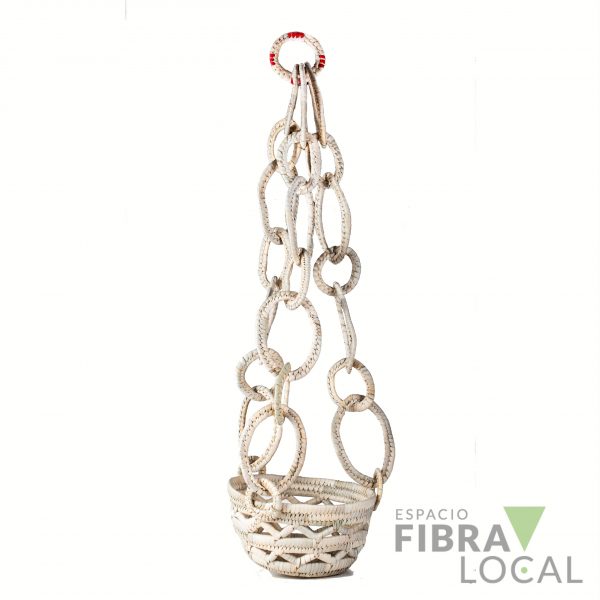 Macetero colgante de ñocha variedad con aplicaciones en color.